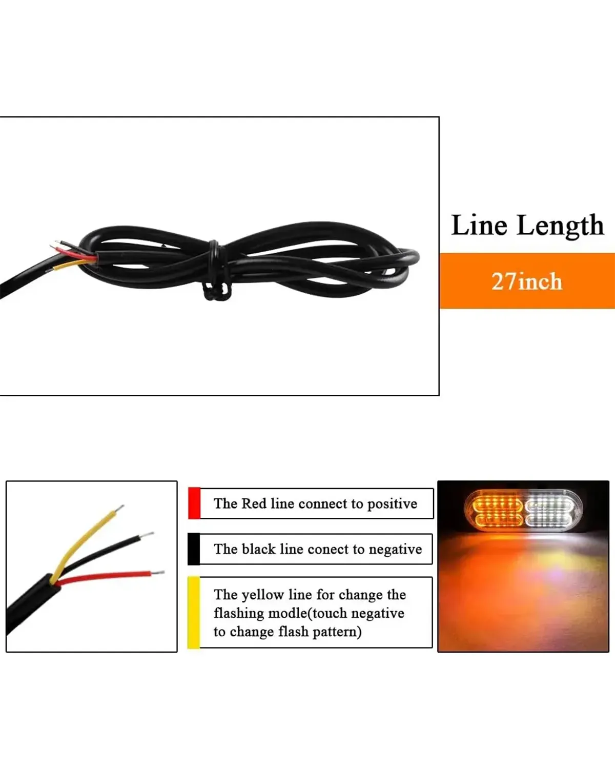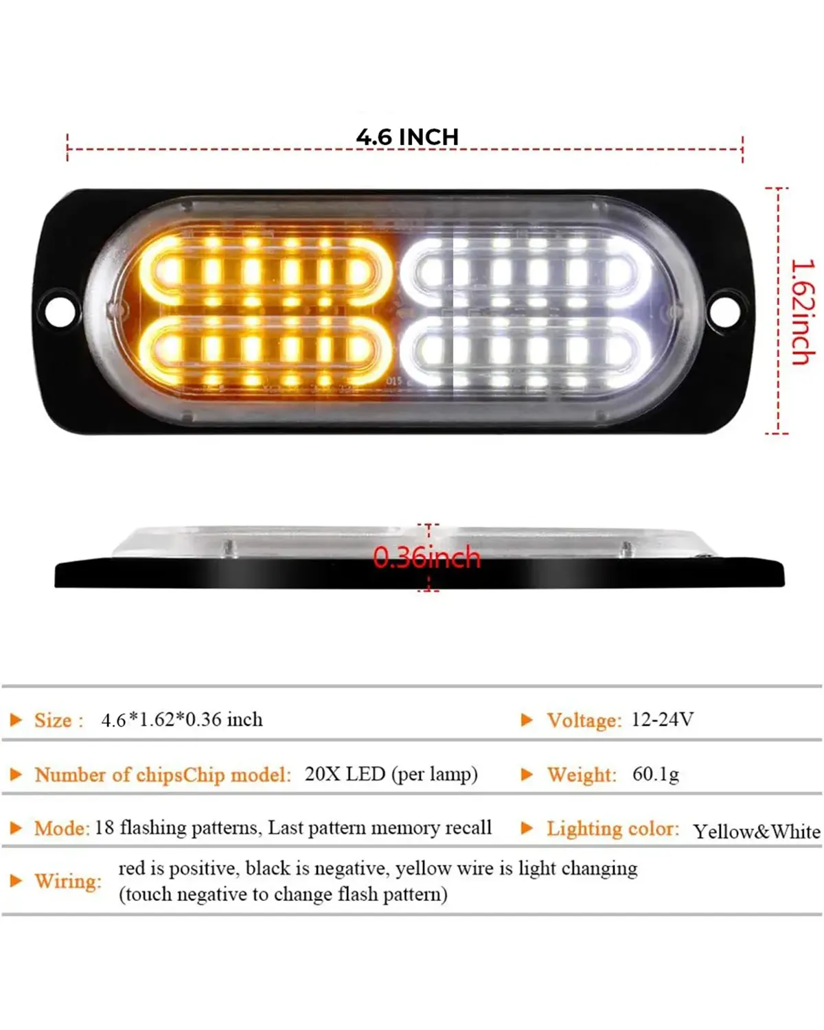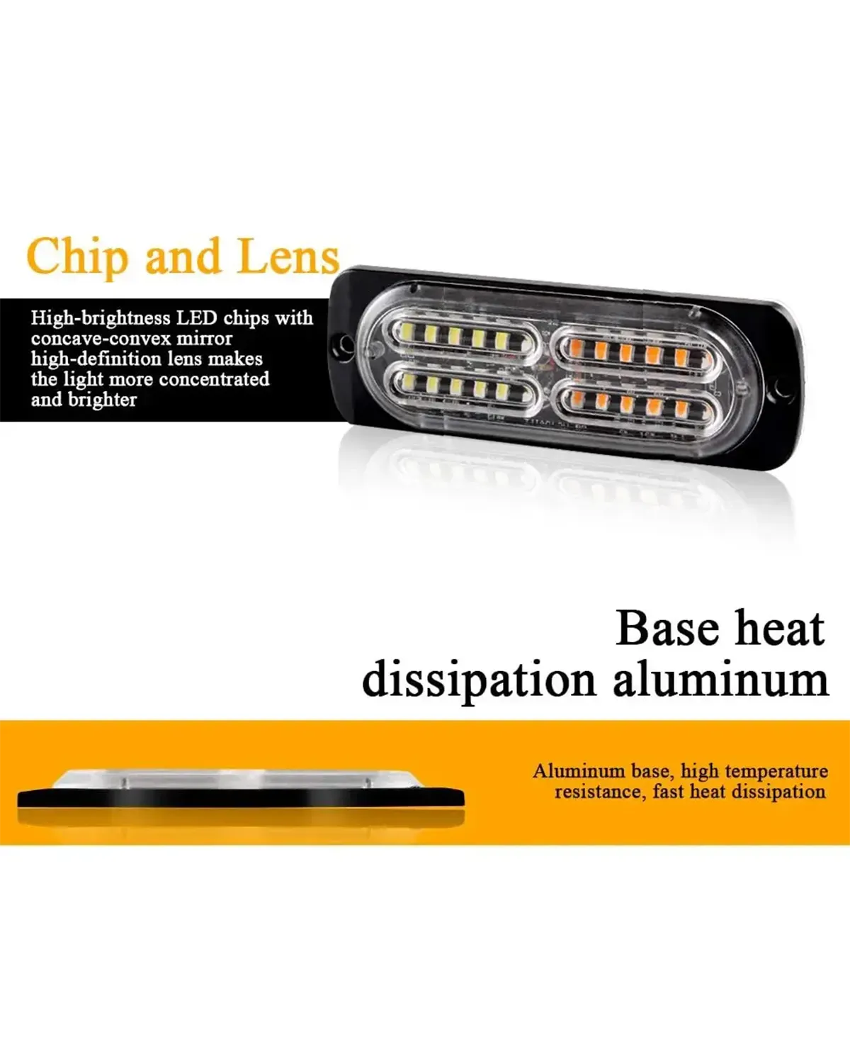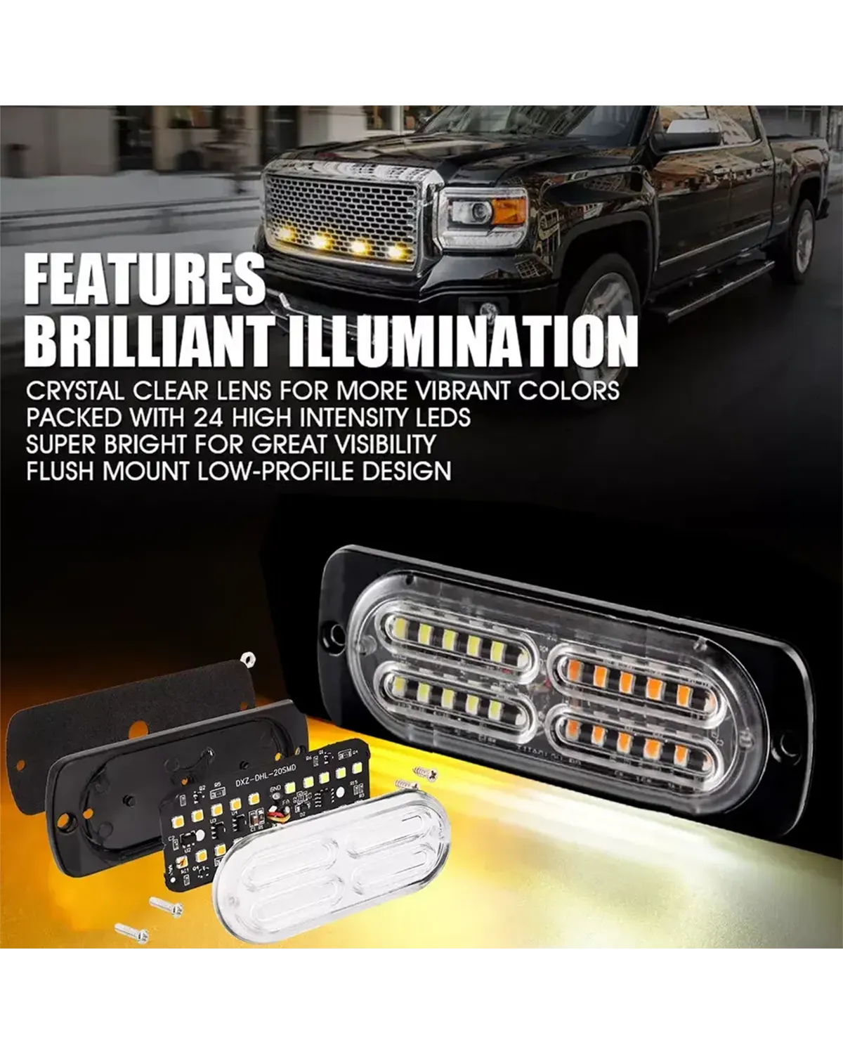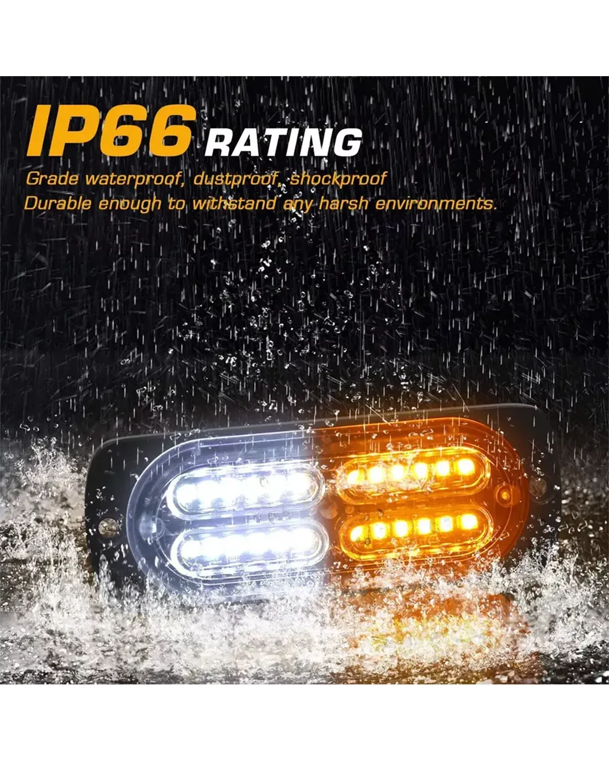 2 × LED Emergency Mesh Lights, White & Amber Flashing Warning Light, 24 LEDs-Strobe light