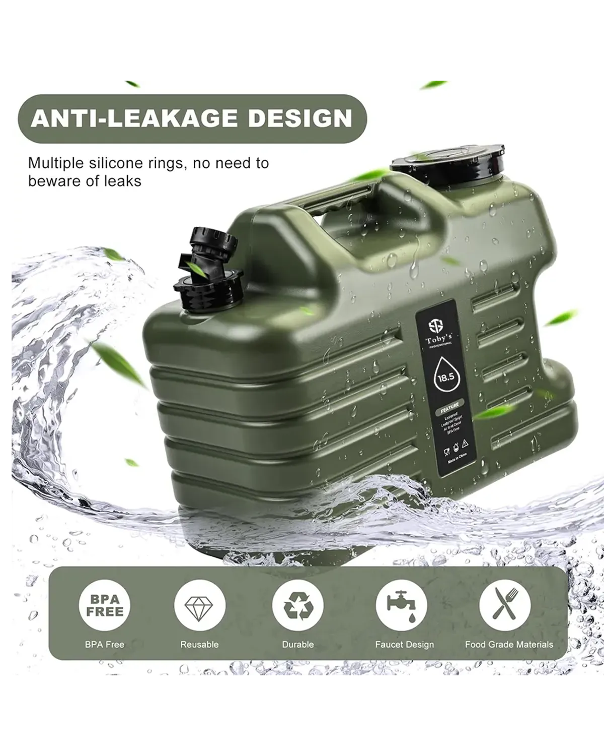 Toby Camping Water Container with Faucet, 4.9 Gallon Water Jug, Large Water Storage Containers, BPA Free Water Tank, Portable Emergency Box for Car, Camping and Hiking-18.5L Jerry Can