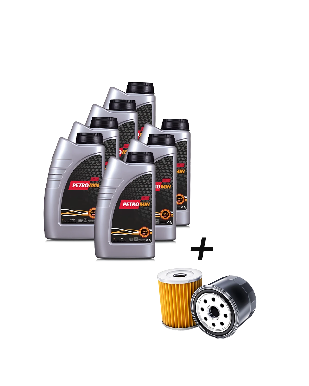 باقة تغيير زيت المحرك (7 لتر زيت بترومين) مع فلتر زيت جديد، لضمان أداء مثالي لمحرك سيارتك.